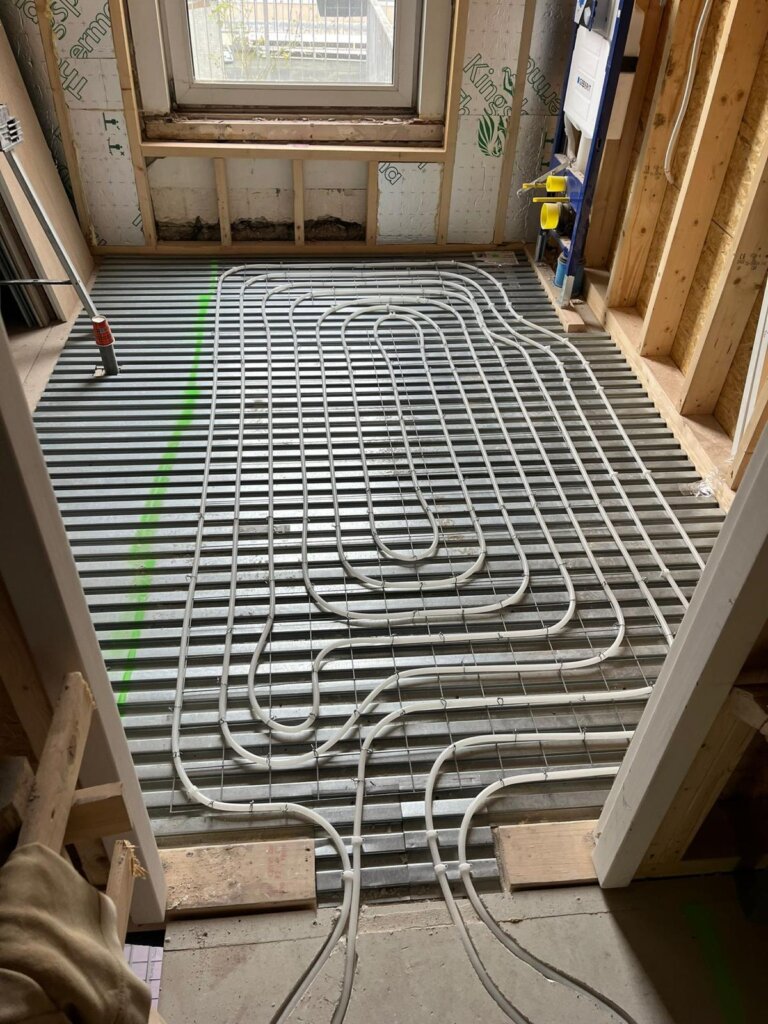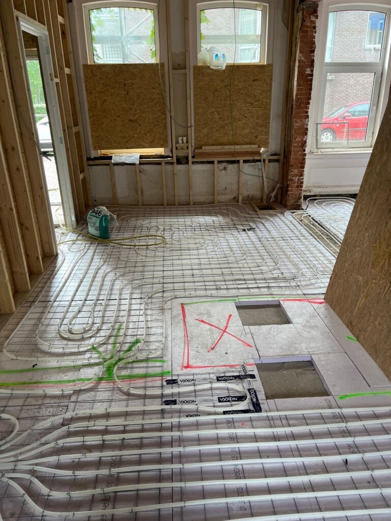 Installatie van vloerverwarming en sanitairleidingen
